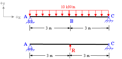 Now we can easily determine the other reactions by applying the equations of static equilibrium;
