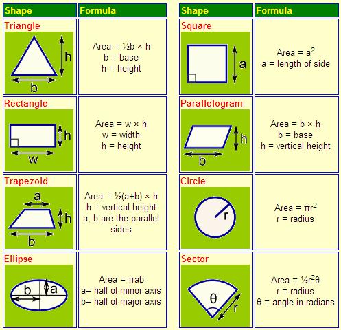 The table given below shows formulae of some standard shapes.